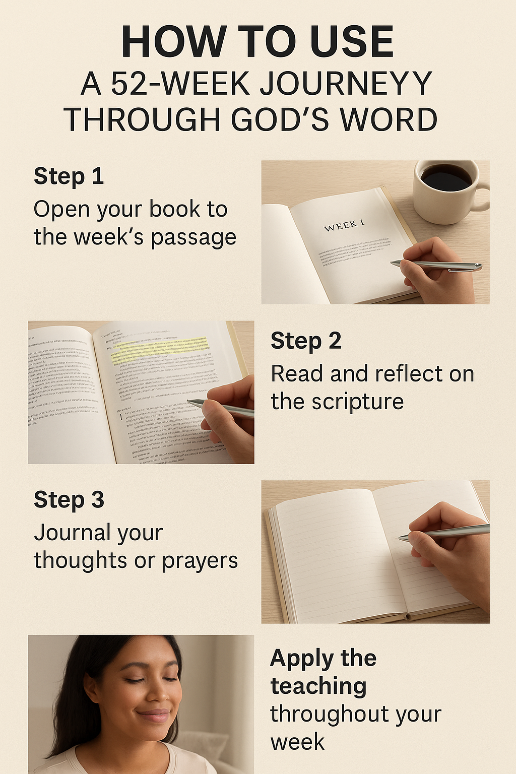 Embark on a profound spiritual journey with this essential guide designed to inspire and enrich your faith over 52 weeks. Ideal for journaling and reflection, it transforms Bible reading into a fulfilling daily practice.