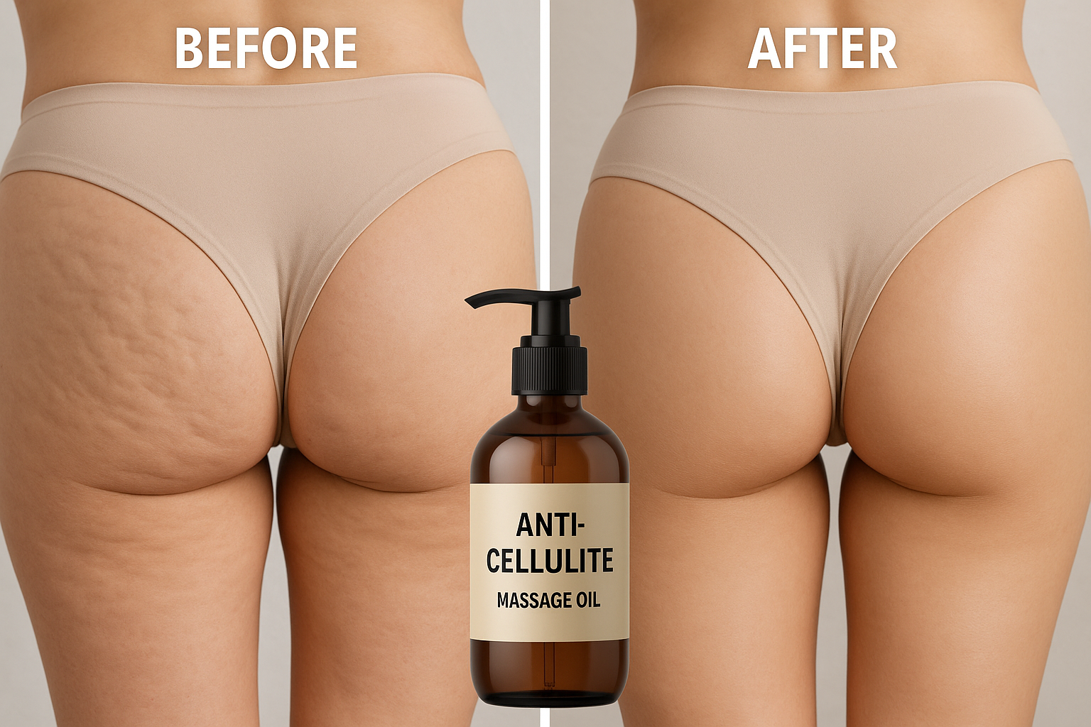 Answer 1: This oil contains natural ingredients that moisturize, tighten, and firm the skin, significantly reducing the look of cellulite on areas such as the hips, abdomen, thighs, and buttocks. Its blend of antioxidants and fatty acids enhances skin elasticity and firmness.